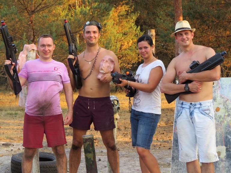 Друг мужа решил отметить свои 30 лет оригинальным способом. Поиграть в войнушку с лазерными автоматами. Сначала у меня возникли опасения на счет этого замысла, физически неподготовленной бегать по жаре. Но мне очень понравилось! И всем кто играл. Сначала я выбилась из сил, но потом открылось второе дыхание и азарт берет верх. Хорошая тренировка между прочим, потом все болело неделю)