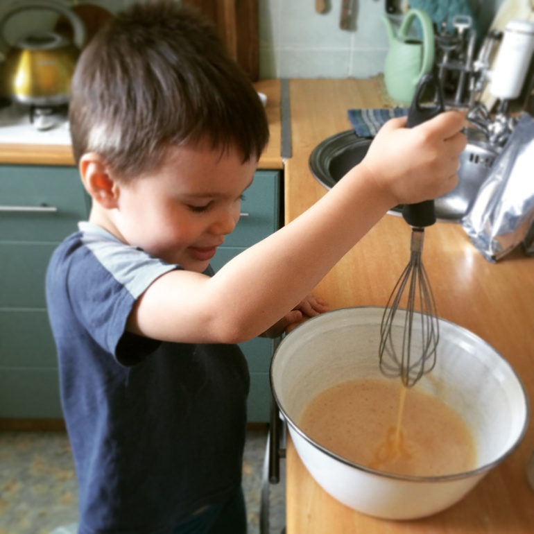 Папа наш уже три недели без выходных( с 9 до 9 и уже ели ноги но сит( сдают объект и потому такие гонки. Ну, а мы торчим дома в трешку и развлекаемся как можем) Вчера с Тимом пекли папе тортик) клубничнобанановоклюквенный) Тим очень старался мешать! Именно мешать, а не мешать!)))) Ведь всбивать яйца с сахаром- эт занятие для настоящих мужчин! ;)