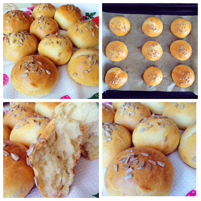 Замешиваем тесто, формируем круглые булочки, выкладываем на противень на пергамент, каждую смазываем яйцом и посыпаем семенами подсолнечника, даём чуть постоять и определяем в духовку 180 градусов минут на 30.... Можно в тесто добавить чесночка 😉 в следующий раз так и сделаю!