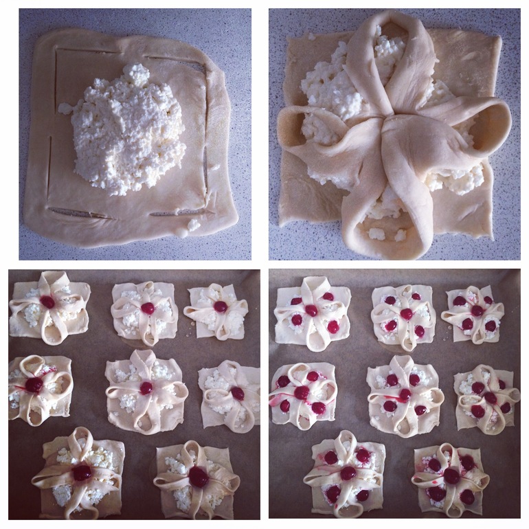 творожные слойки с вишней