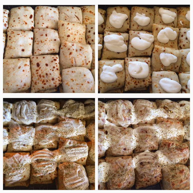 Жарю блинчики не сладкие (чем тоньше тем лучше). Начинка - перекручиваю отварное мясо, отвариваю яйца, жарю лук с грибами... Кол-во и разновидность ингредиентов зависит от ваших желаний и вкусов. Это могут быть и различные овощи, и рис... Все перемешиваю, соль, смесь перцев, зеленушка.... Фарширую блинчики, укладываю в форму, смазываю сметанкой, посыпаю любимыми травками (по желанию 😉) и в духовку минут на 10-15 при 180.... Возишься возишься, а потом - Оп и нетУ 😂