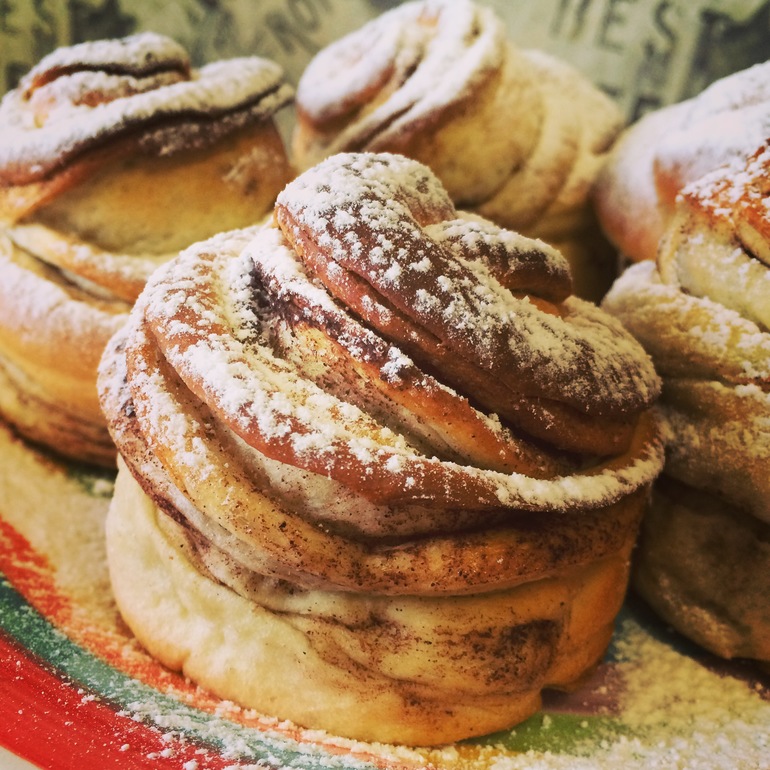 Замесить эластичное мягкое тесто и оставить в тёплом месте на расстойку на 40 минут. Разделить тесто на четыре части. Каждую часть тонко раскатать, смазать мягким сливочным маслом, посыпать корицей с сахаром. Скатать в рулет, разрезать рулетик вдоль и каждую половинку свернуть спиралью срезами вверх. Краффины выложить в смазанные формочки, накрыть и дать ещё постоять в тёплом месте. Выпекать при 180 градусах минут 20-25. Остывшие краффины посыпать сахарной пудрой.