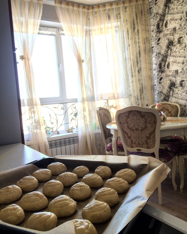 Грамм 150 деревенского творога, одно яйцо, стакан сахара, 100 гр сливочного маргарина, столовая ложка молока, две столовых ложки деревенской сметаны, щепотка соли, чайная ложка разрыхлителя, ванилин. Все растерла до однородной массы, добавила три стакана муки и замесила тесто. Скрутила шарики размером с грецкий орех и выложила на противень на пекарскую бумагу. В духовке минут 25 при 180! Воздушные печеньки получились 😍☀️