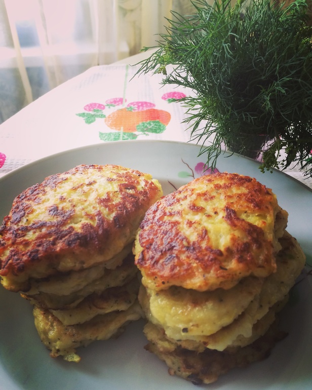 Кабачки на терке измельчить, отжать, одно яйцо, соль, перец, смесь прованских травок, мука, поджарить на масле и выложить на бумажную салфетку. Когда масло лишнее уйдет, выложить на сухую тарелку. Очень хорошо со сметанным соусом (сметана, зелень, чеснок) Приятных осенних ужинов!