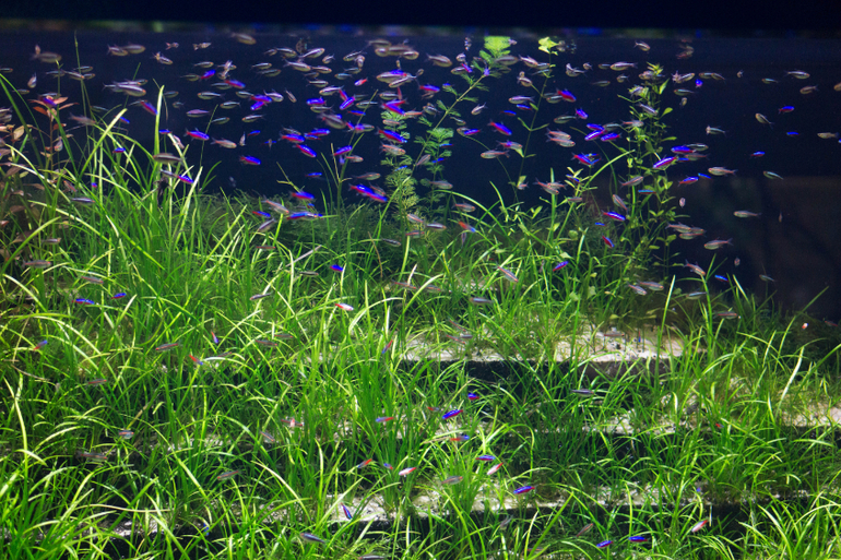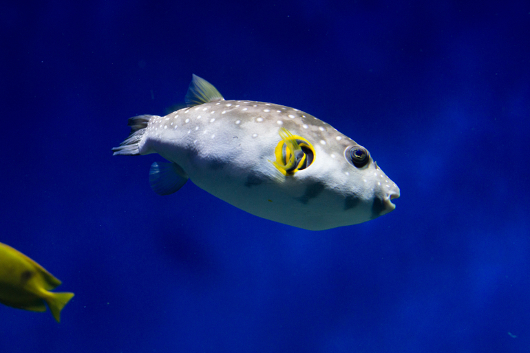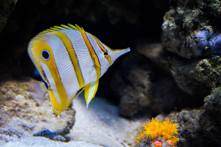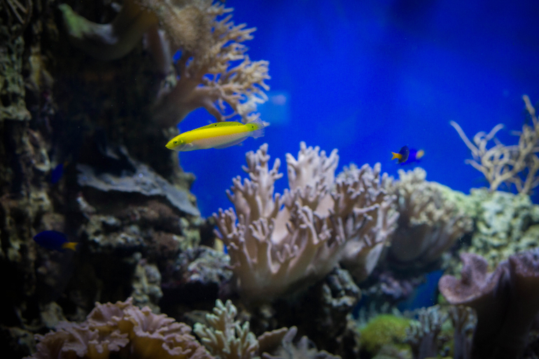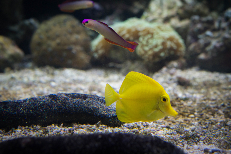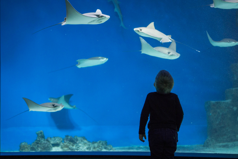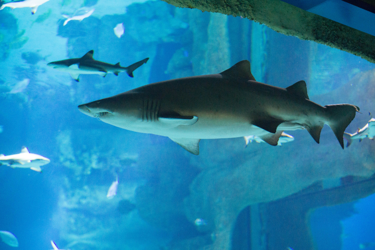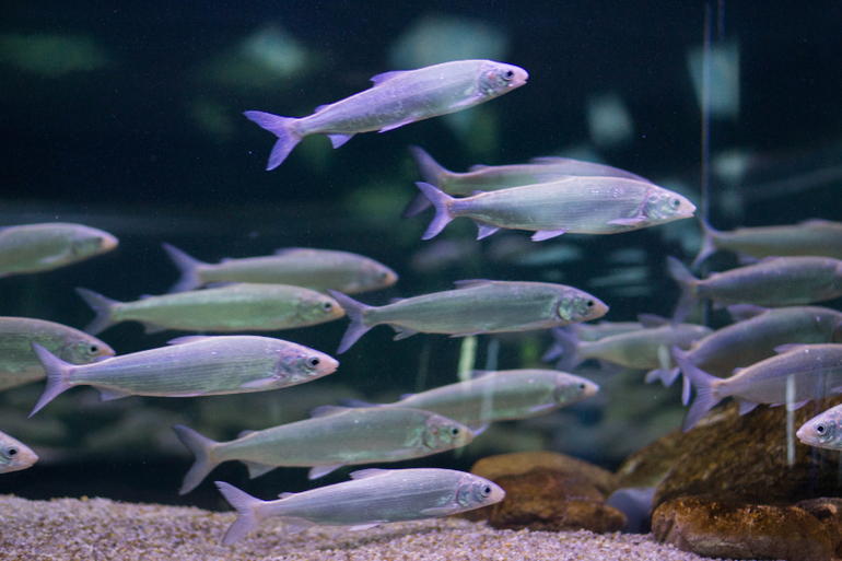 Есть еще круговой аквариум, в котором носится косяк этих милых серебристых рыбок, с другой стороны есть проход, и можно оказаться в центре него, а вокруг тебя будут пролетать эти шустрые рыбки.