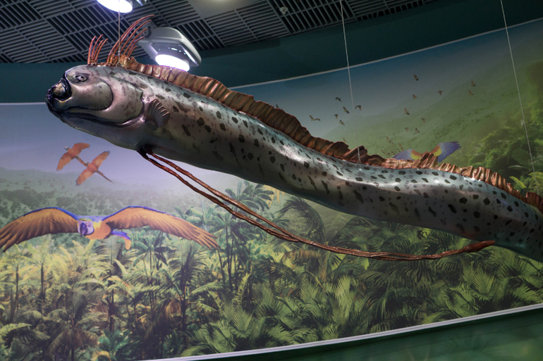 Дальше были представлены наши пресноводные рыбы, гигантские осетры, щуки им ного других представителей.