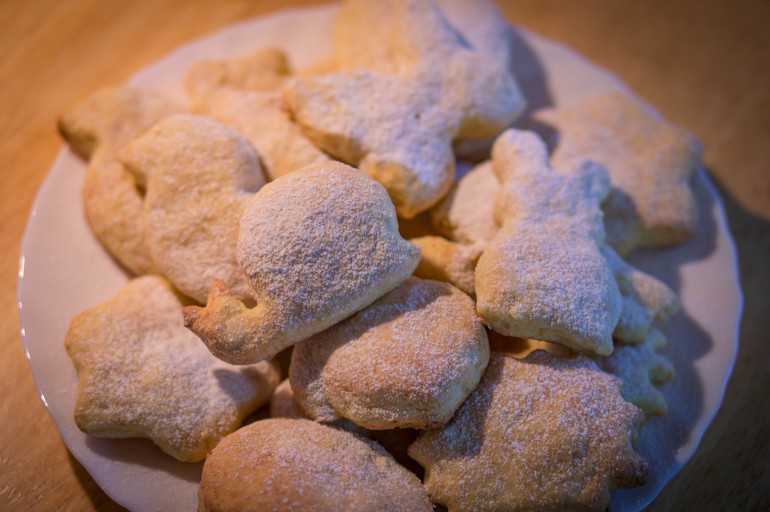 Творог размять ложкой и перемешать с яйцом, масло натерла на терке, добавила к нему сахарный песок и все это растерла, далее соединила творожно-яичную смесь с масленно-сахарной, добавляю муку постепенно и перемешиваю, раскатать тесто до 3-5 мм, наштамповать формочками и на пергаментную бумагу, на противень, 180 градусов - 20-25 минут, поднимаются хорошо, такие пышненькие. Я посыпала еще сахарной пудрой. Изначально количество ингредиентов было в 2 раза больше, мне показалось