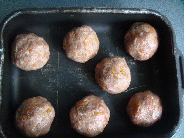 Добавить натертую сырую морковь и яйцо. Сформировать крупные шарики: