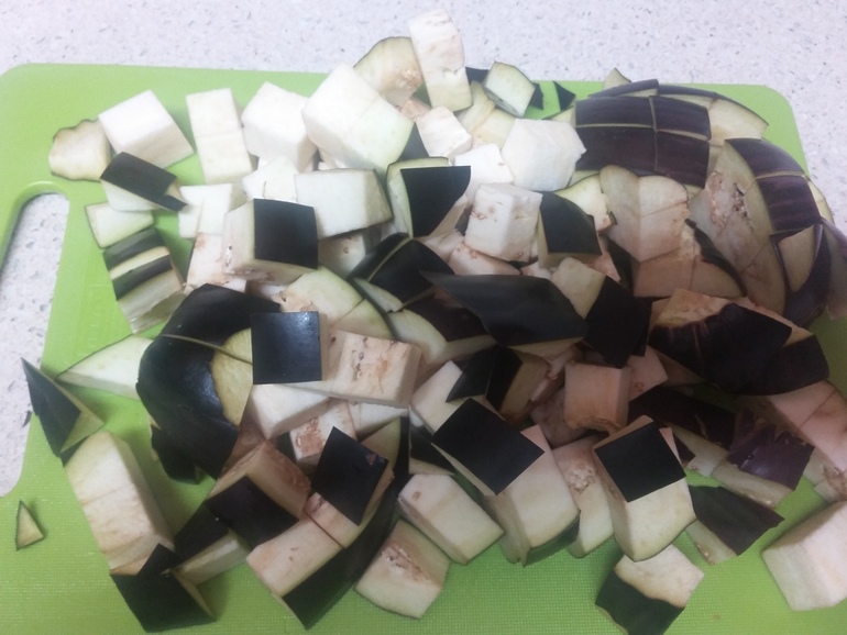Добавить нарезанные баклажаны: