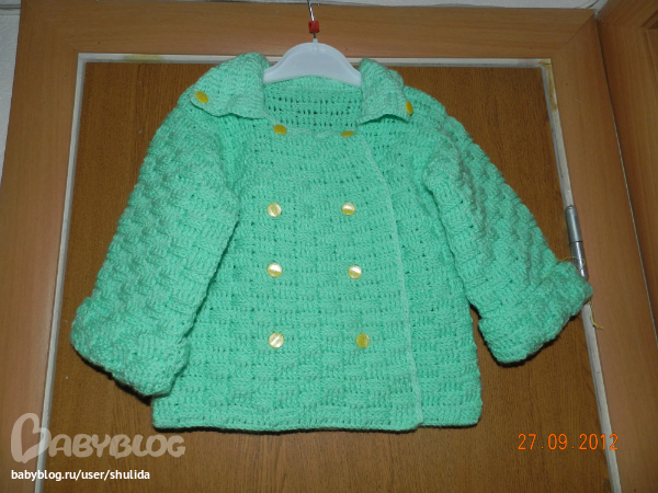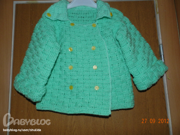 Девчонки,наконец-то довязала,пришила пуговки...обнаружила кучу недочетов,которые учту при следущей вязке(на заказ)...но все равно довольна своим результатом.теперь свяжу шапку и шарфик в тон,чтобы был красивый набор!!!!!!!