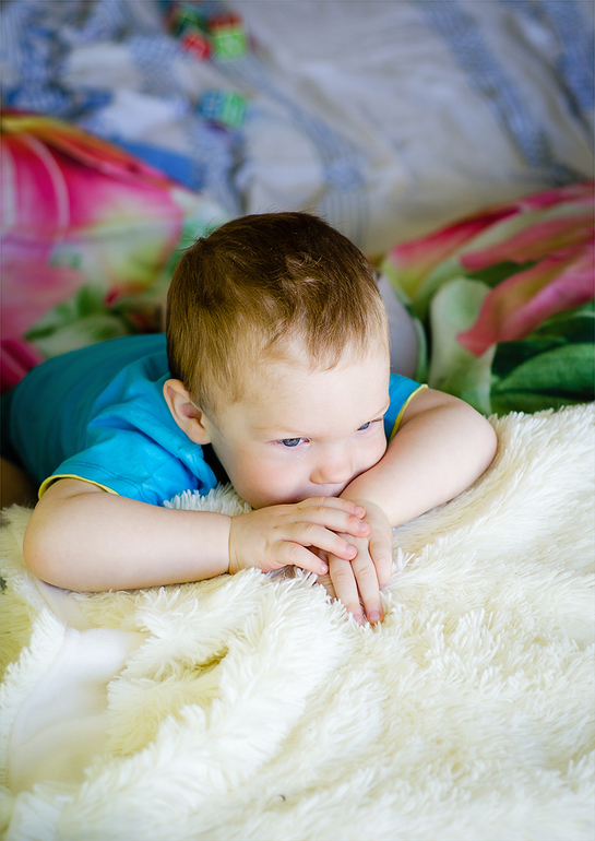 Это все из-за мини-аварии перед самым сном.Ему было больно, и была доля капризов из-за сонного состояния. Успокаивался только на мне, не отлипал от меня. Так и уснул на мне голенький. Ночь проспал на диване. И с тех пор ночью спит на диване, днём в кроватке.