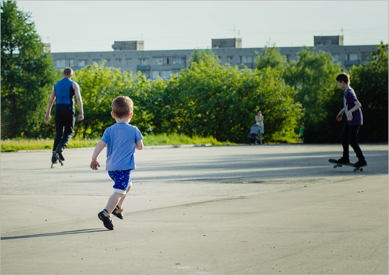 Детишек много, взрослых не меньше - настоящий муравейник. Все бегают, играют, катаются на роликах, велосипедах. Здорово!