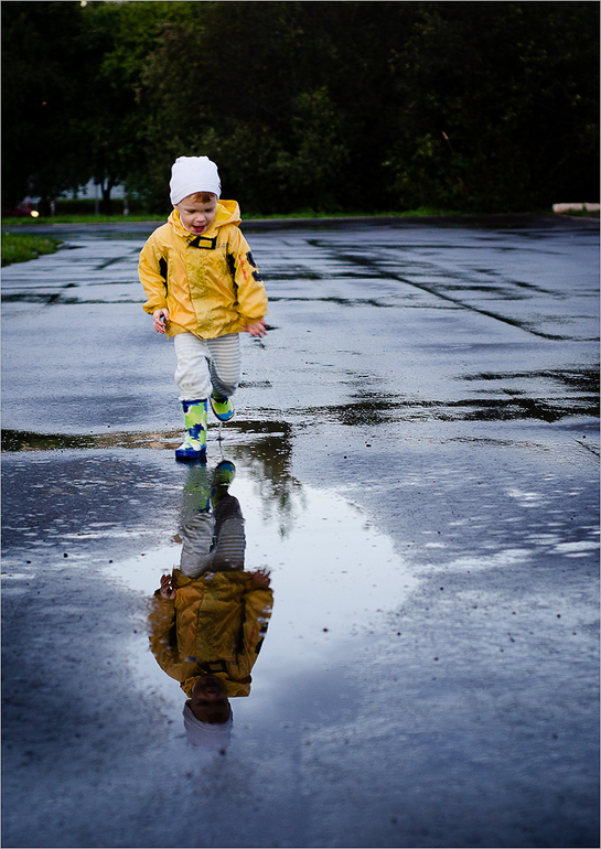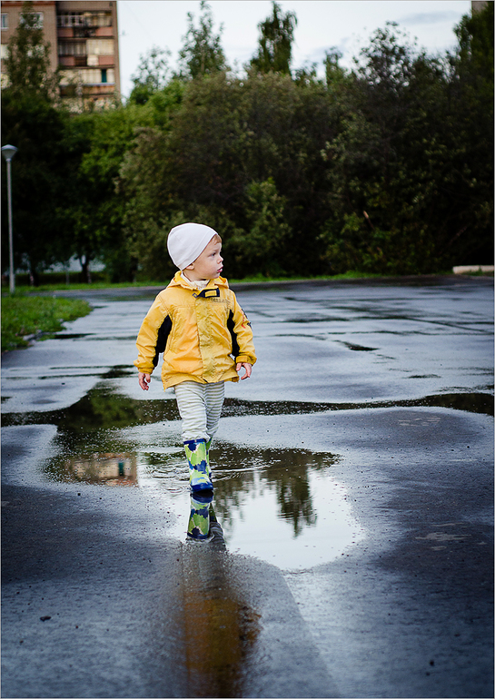 Давай, Тимурочка, играть, друг друга по лужам догонять!