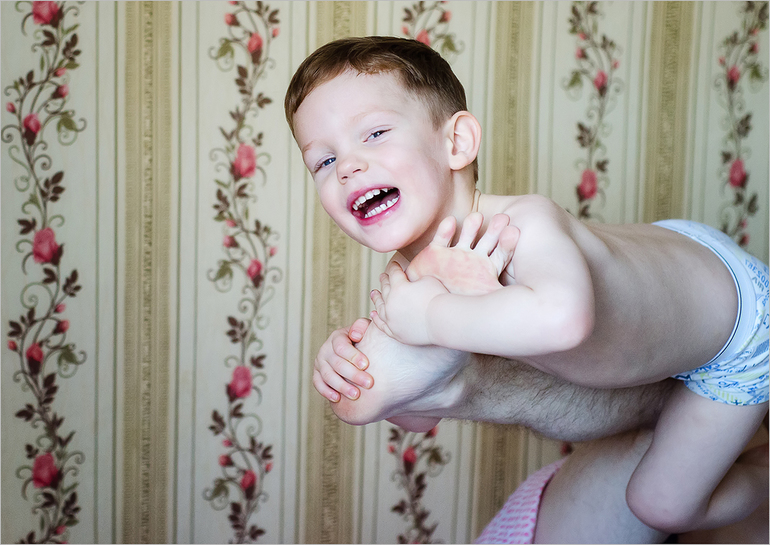 С такого диалога и потягушек начинается наше доброе утро. Потягушки делает, приговаривая: "Вот проснулись, потянулись, с боку на бок повернулись! Потягушечки! Потягушечки! Где игрушки, погремушечки? Ты, игрушка, погреми, нашу дитьку (маму) подними!"