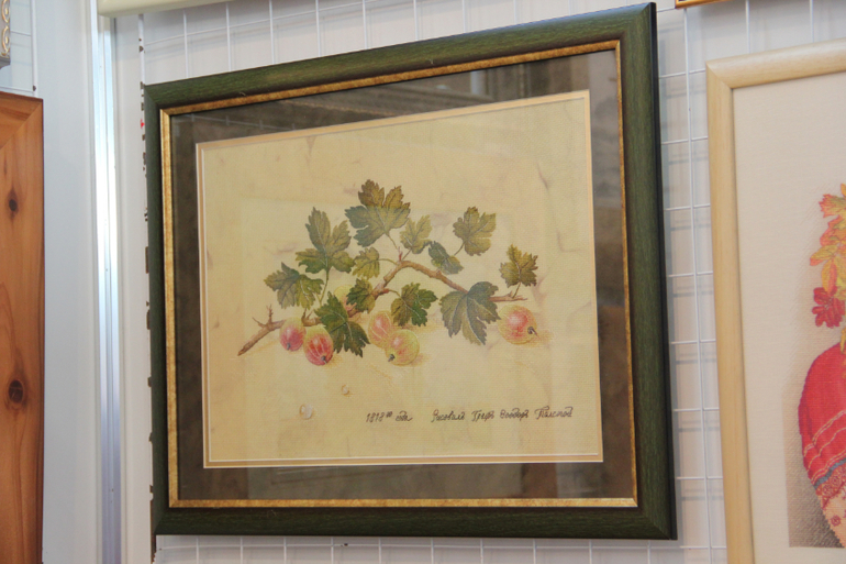 И здесь же я увидела заветный крыжовник, давно бередивший хомячье сердечко. А под крыжовником сидела его автор. Я спрашиваю: "Вы случайно не Екатерина Волкова?". Она говорит: "Да, это я". А я отвечаю: "Похожа!". Она смеется, а до меня доходит, что я ляпнула. В итоге, конечно, я пояснила, что сравнивала с фотографией, которую видела у нее в контакте и по которой, собственно, ее и узнала. Мужа очень впечатлил этот дизайн и мы приобрели схемку прямо у автора, что сделало покупку особенно приятной.