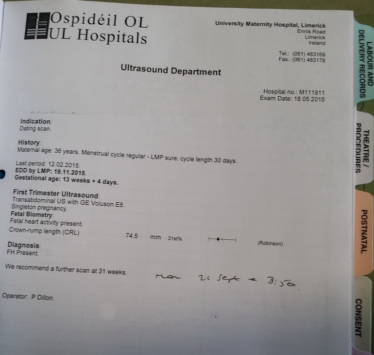 Живу я в зарубежье, поэтому здесь немного всё по другому. Пришла к доктору, он с моих слов записал что я беременна, поздравил и отправил домой, сказал ждать письма, письмо пришло через неделю, с приглашением в госпиталь аж 18 мая. Тогда только они начнут меня наблюдать, а до того времени, если всё хорошо, то всё хорошо, а если не очень, то на всё воля Божья, на первом триместре не сохраняют. Аборты запрещены, потому и на отклонения особо тоже не проверяют, так как не зачем, рожать всё равно будешь, что бы там ни было.