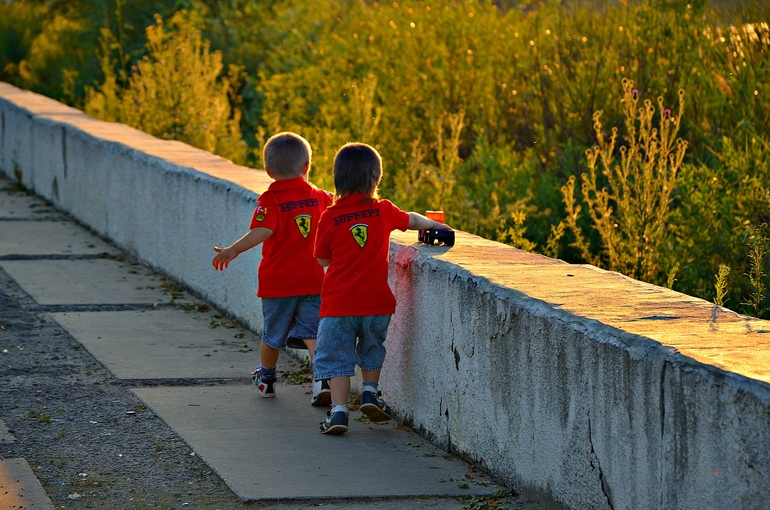 Сестра бегает за моими мальчишками, а я их догоняю с фотоаппаратом
