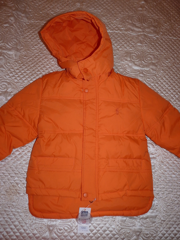 Пуховик на рост 100. Удлиненная спинка пух не лезет, строчки ровные. Есть такой же оранжевый.