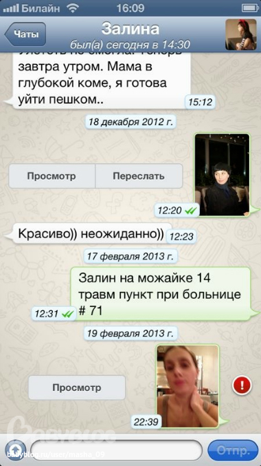 мое сообщение Залине 17 февраля в 12:31 по Московскому времени. за 5 минут (максимум) до того как она мне сообщила что скорую не вызывают, а ребенку надо в больницу.