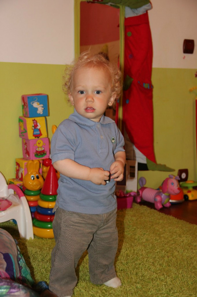 Макарчик вел себя чинно-благородно, ел пиццу с рукколой и играл в машинки)))