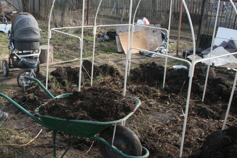 А потом наступил холоднючий апрель, мы установили теплицы, сделали теплые грядки в одной из них.