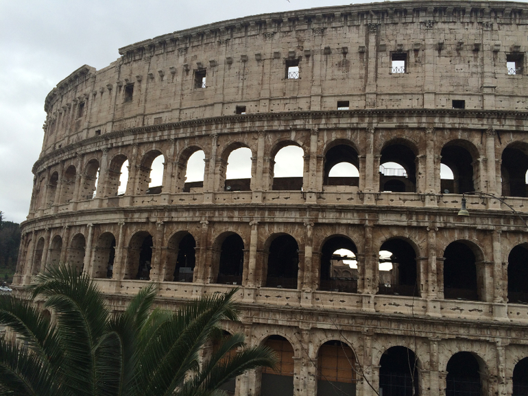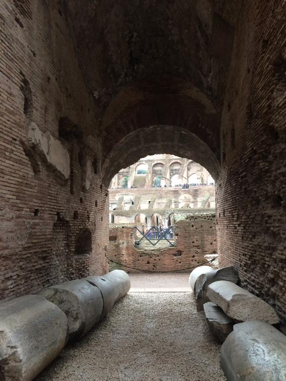 Чтобы попасть в Колизей вам надо купить билет, который действителен для посещения Колизея и Римского форума. Кроме того, вам надо отстоять огромную очередь, которая запросто может растянутся на 2-3 часа, так как проверка посетителей там не менее тщательная, чем в аэропорту перед посадкой на самолет, а желающих попасть внутрь просто зашкаливает. Поэтому, чтобы сэкономить драгоценное время идите сначала, как и мы, к Римскому форуму (это рядом). Там покупаете билет (он же будет действовать на проход в Колизей). Погуляете там и возвращайтесь в Колизей. Лица, уже имеющие билет проходят через отдельный вход и всё это мероприятие займет не более 5 минут. Это очень важно, особенно, если вы путешествуете с ребенком!