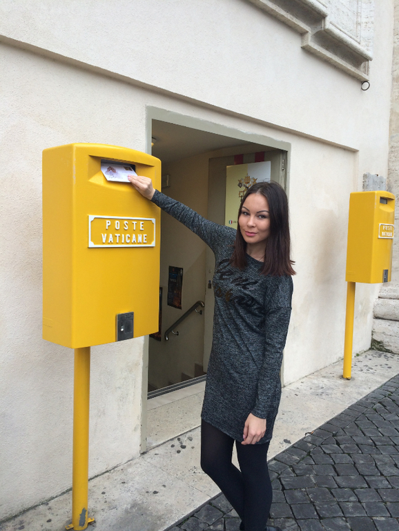 Отправляю открытки сестренке и друзьям с ватиканской почты