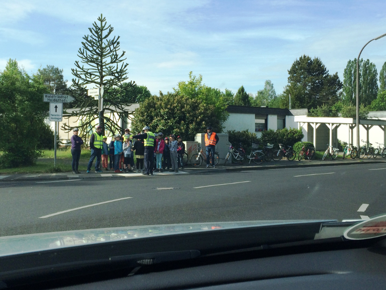 Юные велосипедисты, спешащие в школу, - неотъемлемая часть утреннего пейзажа любого немецкого города. Но сначала детям необходимо изучить правила дорожного движения. В роли инструкторов выступают служащие полиции.