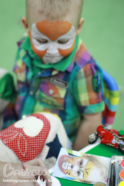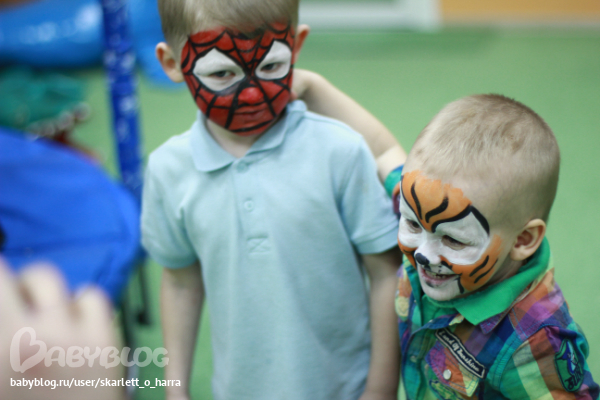 а вообще хотела рассказать про День рождения друга Владика. были в Лесном городке. как они называются эти детские комнаты с игрушками, надувным городком и .т.д. было круто. я смогла расслабиться. Сеня никого не толкал, занимался своими делами. сам по себе. когда пришлА Карлсон, движуха началась! Сеня везде учавствовал, кайфанул. взял от праздника все 100%. кульминация - это детский гримм. мой тигренок ррррррр. фото ниже. высидел выдержал. домой на автопилоте.))) вымотались все детки-зайчики. впереди наши 3 года. уже надо действовать, что то думать.