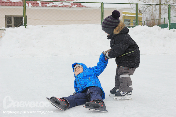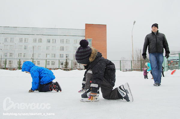 мы встали на коньки в этом году. дедушка с бабушкой порадовали этим подарком на НГ. Арсюша с огромным удовольствием. уходить не хочет. со второго раза САМ САМ. и пошел. умничка.