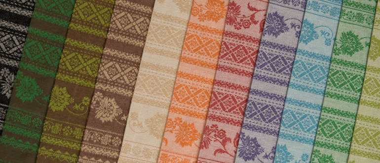 Отдельно стоит сказать о специальной «шарфовой» ткани: такое полотно ткут на заказ небольшими партиями, оно предназначено для узкого круга потребителей, идет только на пошив слингов. Стоимость шарфовой ткани определяется затратами на ее производство (например, двойное диагональное плетение дешевле в выработке, чем жаккард или алмазное), объемом производства, стоимостью расходных материалов. Добавление к хлопковой нити других составляющих (для этого используется термин «бленд») - льна, шелка, конопли и пр. - преследует определенные цели. Например, лен дает большую грузоподъемность при возможности носить в жаркую погоду, шелк и бамбук обеспечивают тонкость, нежность ткани, шерсть и кашемир повышают согревающие свойства слинга.