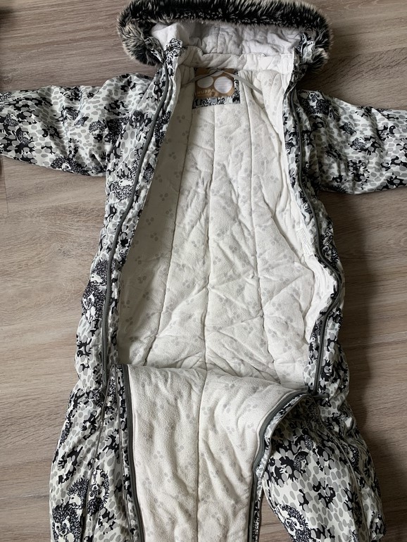 3. Комбинезон весна-осень на 68-74. Ручки закрываются, открываются, ножки сшиты ползунками (не открываются) (на фото видно) Внутри на хлопке. Размер 74. Мех отстегивается. В идеальнейшем состоянии. 1200руб.