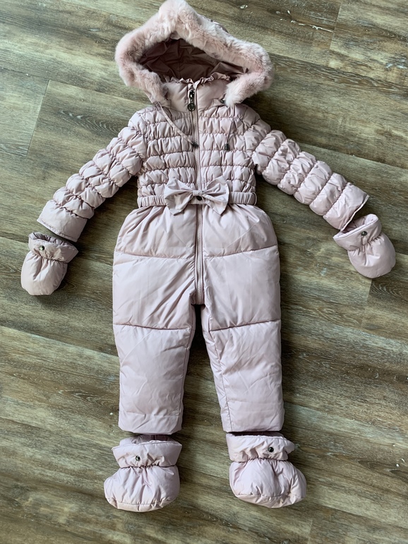 10. Комбинезон Kiwiland 80-86 новый с бирками. Очень теплый зимний комбинезон, цвет пыльная роза, как на первых двух фотографиях, телефоном сложно поймать оттенок. Комбинезон с варежками и пинетками, выглядит очень дорого (стоил тоже не дешево) и стильно. Отдаю дешевле, чем покупала. Модель на фото ростом 86 см, в ножках и ручках еще есть небольшой запас. 3800р.