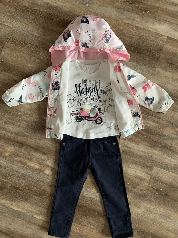 На фото показала колени, рукава...все в идеальном состоянии без потертостей и дыр. Мы его поносили 3 недели в январе, потом улетели и обратно вернулись уже летом из-за карантина(( 2500 руб.