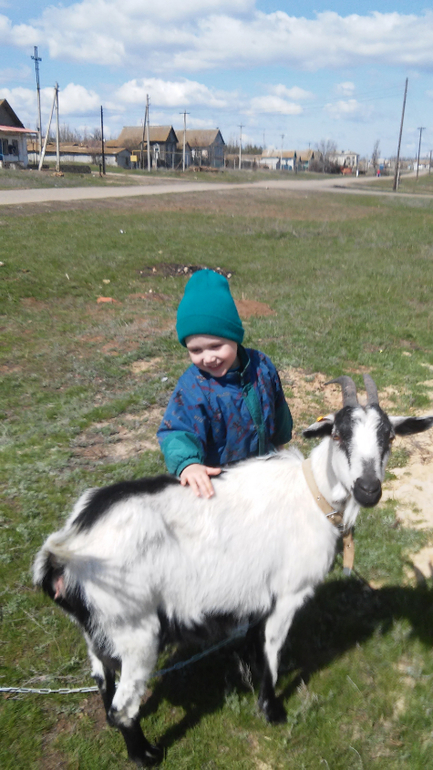 У нашей бабушки есть куры, утки, гуси, овечки, козёл и коза (на фото)