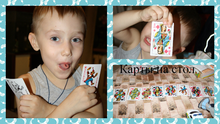 Оказывается это так забавно. Сначала я пыталась объяснить правила, что какую карту "бьет", повторяли цифры, а оказывается моему ребенку это не нужно. И вот мы стали играть так, как видит мой ребёнок.