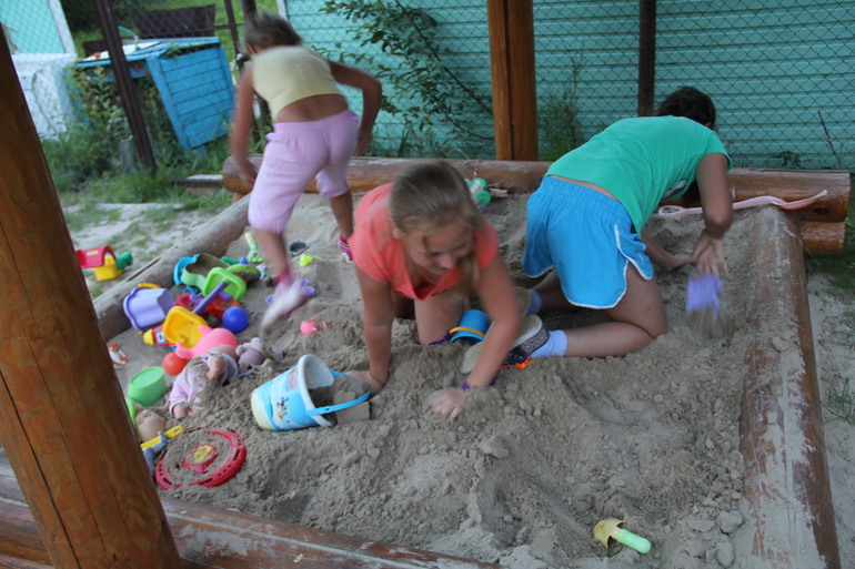 4 задание: я спрятала в песочнице маленькую игрушку, но сначала конечно показала её девочкам, чтобы они знали что искать. Не сказала где именно я её зарыла. Их задача отыскать. Нашли))
