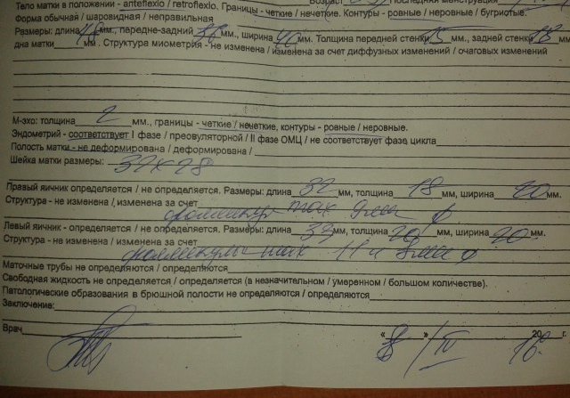 Девочки, была сегодня на фолликулометрии и забыла спросить про толщину эндометрия, подскажите пожалуйста, где в заключении это значение????