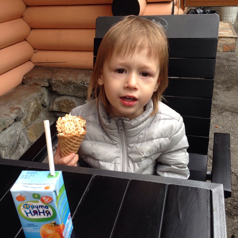 Ну мы и не гуляем никогда больше 2,5-3 часов, поэтому кушать нет необходимости. А вообще у нас неприняты перекусы) если кто-то из детей угостит каким-нибудь сухариком, крендельком, то съест, конечно, но сам никогда не просит, знает, если хочет есть, то надо идти домой и есть суп