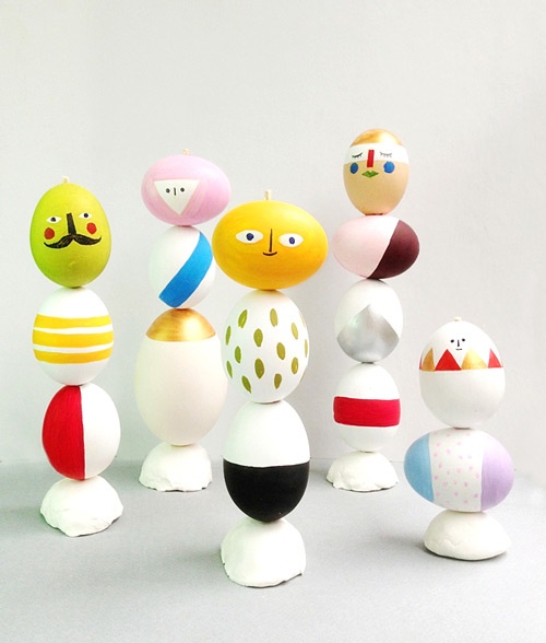 В нашем магазине тканей продаются замечательные деревянные игрушки под роспись. Среди них есть и яйца под под покраску. Если и вы найдете у себя нечто подобное, то вот парочка идей.