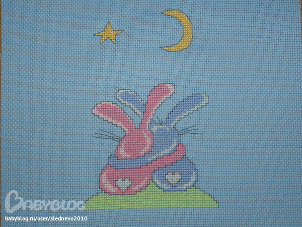 Ко дню Святого Валентина для мужа у меня вышились вот такие зайчики от Panna(наверно как раз к этому дню они и оформятся)))