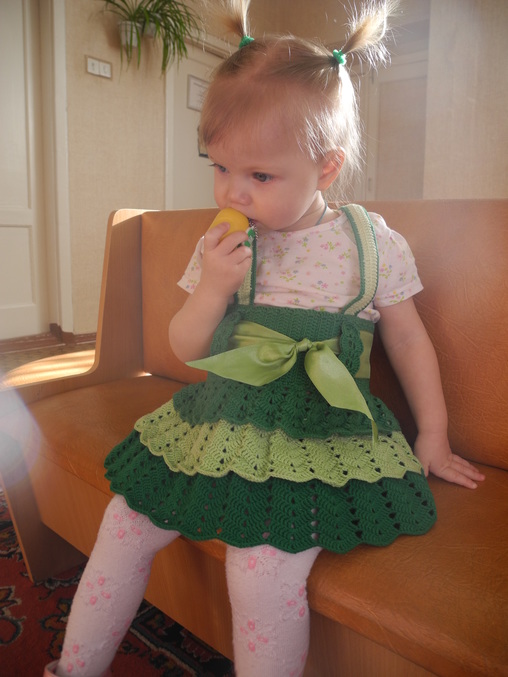 Все что-то делают. Вот и я решила поделиться своими трудами. Правда я только-только научилася вязать и еще не все до конца понимаю. Это платье мы одевали на закрытие елки в Центре игровой поддержки