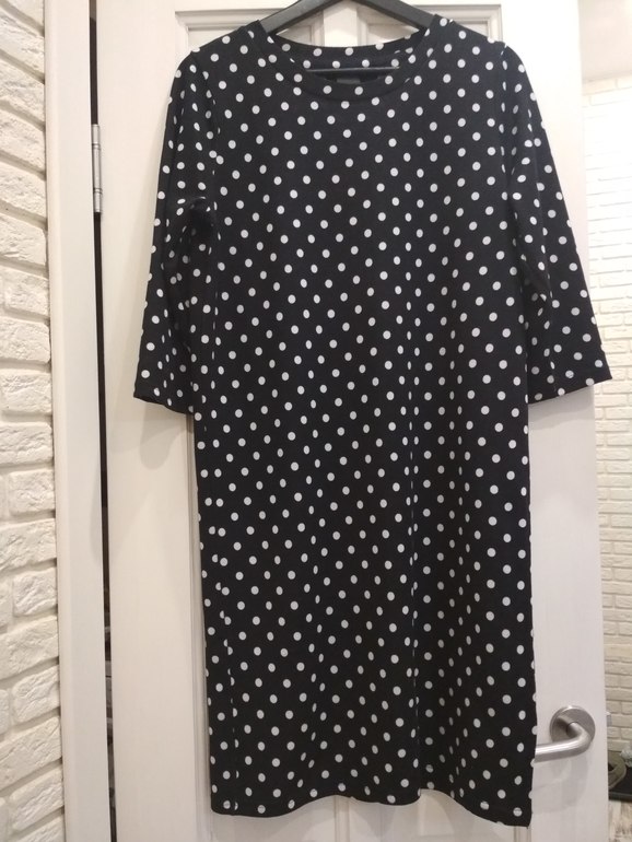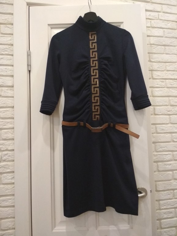 Платье трикотажное, ооочень удобное, фигуру очень стройнит, обожала это платье, сейчас не влезаю. Р.44, 1000