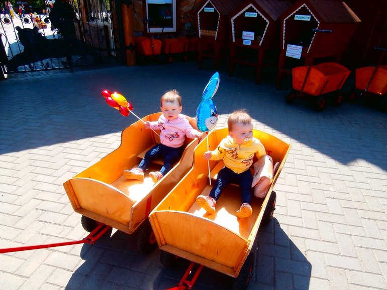 Ходили в зоопарк!очень понравилось им, только зверюшек мы не особо рассматривали, больше интересовали другие дети и палатки с шариками и всякой мелочью)