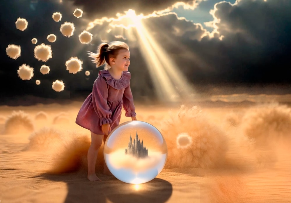 Это **фотореализм**. Тёплый свет. Натуральные ткани. Детали, которые хочется разглядывать. И главное — **настоящее лицо вашего ребёнка**, органично вписанное в атмосферную сцену.