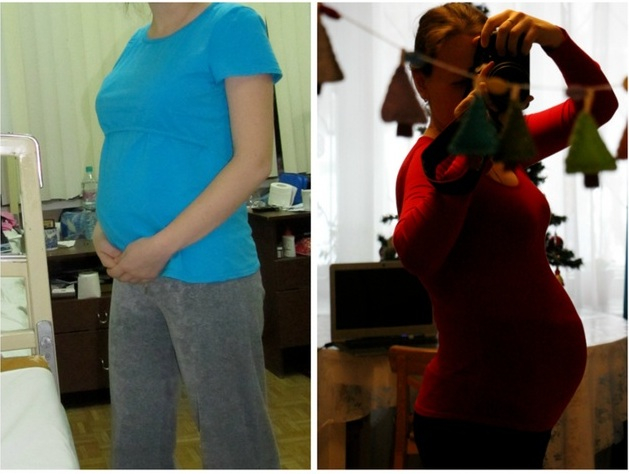 Слева беременность Варей, где то 24-26 недель. Справа беременность Колей 24 недели 5 дней. Внизу настоящая беременность, срок 25,4.