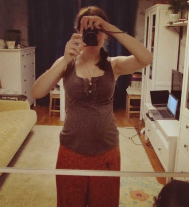 Незаметно превращаюсь в шарик. До вчерашнего дня ходила дома в основном в халатах, а на выход одевала одежду для беременных и особого изменения не было видно, а тут нарядилась в штаны и футболку, и просто удивилась, какая я кругленькая стала. И животик, и грудь(про попу скромно молчу), прямо русская барышня, всё при мне)) В куртку свою старую уже не помещаюсь, она конечно застегивается, но ощущения будто в корсете. Полной грудью не вдохнуть))