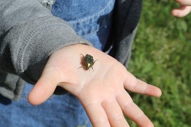 А вот это сегодня утром, у церкви, там на цветочках такие жуки седят, я думала майские, но мне скажи это какие то мятные жуки. В любом случае, очень симпатичные товарищи, да к тому же добронравные))