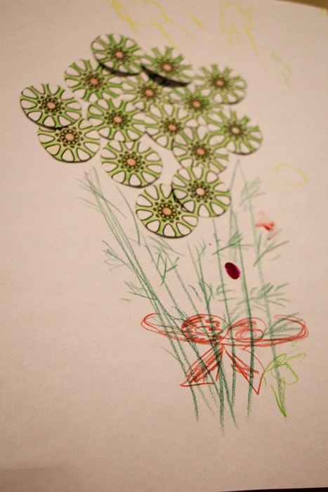 За правильный ответ давались ромашки, которые я вырезала из раскраски. Потом мы из этих ромашек сделали букетик