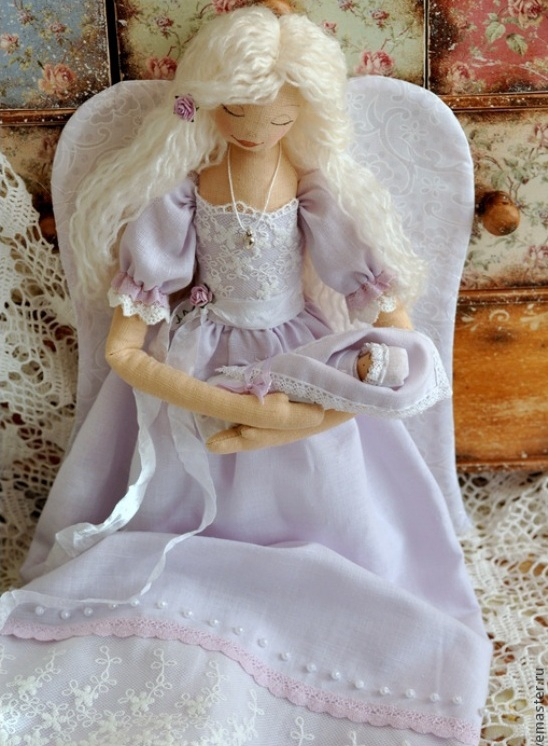 Первой привлекла мое внимание работа "Все мамы - Ангелы". И я хорошо так подзависла рассматривая других мам-Ангелов. Потрясающие работы!!! Нежнейшие!!! С удовольствием бы приобрела себе домой такую красоту, жаль автор не делает кукол на заказ.